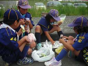 | 差し入れのスイカを頂いて、 美味しそうです。 スカウトたちは良い経験でした。 |