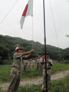 | 朝礼です。 しっかりと敬意を持って国旗掲揚。 素晴らしい。 |