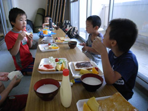 | 美味しい朝食を食べて、満足です。 キャンプも楽しもうね。 |