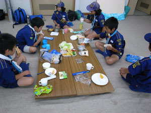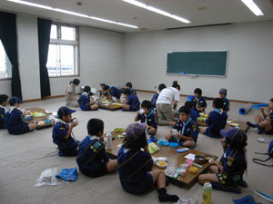 | 宿泊の練習と、 スカウトの組のコミュニケーションが 目的です。 |