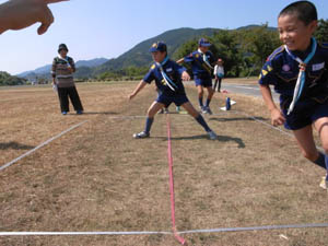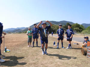 | ボーイ隊からベンチャー隊へ。 さすがに大人です。 「跳べ」の声にも、 ちょっと、照れながら・・・ |