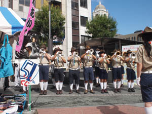 | パレード後の様子。 お疲れ様です。 今日の演奏は、 ボーイ・ベンチャーのスカウトが主力。 ローバーやリーダが 少なかったにもかかわらず、 なかなかの演奏でした。 |