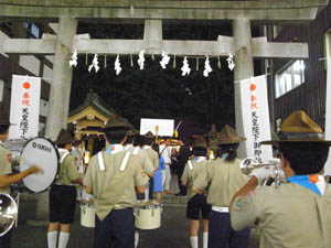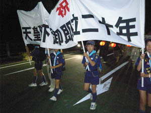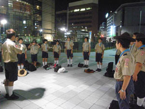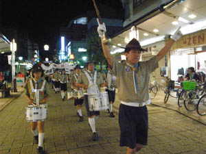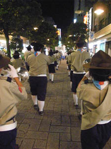 | カブ隊は、横断幕を持って パレード参加です。 夜遅かったけど、がんばりました。 かっこよかったよ。 他のスカウトものぼりを持ったり ビーバーはちょうちんを持ったり 行列に参加しました。 写真が無くてすみません。 |