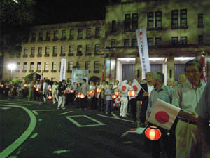 | 誘導したのは、この方々。 ちょうちん行列です。 |