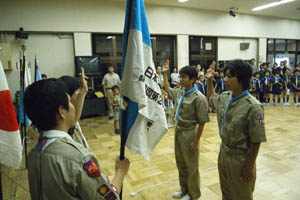 | 隊旗を持って、 やくそくの唱和。 |