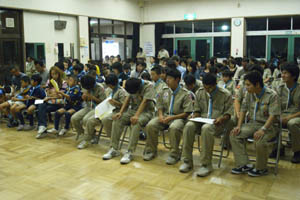 | 上進式後は、総会。 当団は、総会にスカウトも出席します。 自分達の活動ですから。 前年度事業報告 前年度決算 次年度事業計画 次年度予算。 滞りなく、承認されました。 |