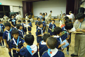 | 続いて、カブ隊から ボーイ隊へ。 今年は3名上進。 |
