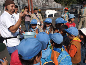 | その後、飼育員さんから 生態や、えさ、骨格について 説明して頂きました。 スカウトたちは、本当に貴重な体験が できました。 浜松動物園の皆様 本当にありがとうございました。 |