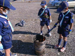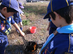 | カブ隊は、火起し訓練 毎年の事ですが、スカウト技能の 第一歩???? |