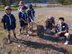| こちら年長スカウトたち。 来年はジャンボリー 気合入ってるのかなぁ??? まあ、楽しそうだからいいや。 |