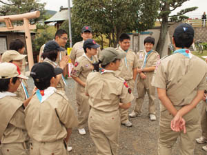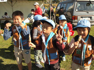 | うれしい事に、ボーイ隊の 新入隊員 はやくみんなと打ち解けて、 楽しくスカウト活動に 参加してね。 |
