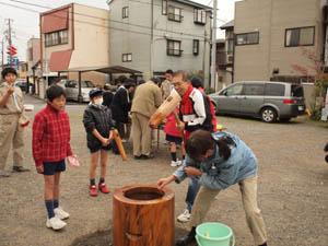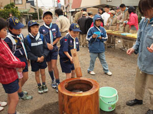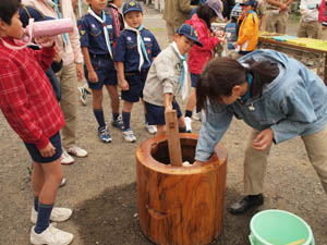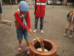 | そして、お餅つき ビーバーも、カブも ボーイも、お父様も みんなでつきます。 |