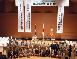 | 更に、ビーバー隊副長 ボーイ隊副長のお2人に対し 永年の奉仕の功績を称え 県連有効章が授与されました。 おめでとうございます。 |