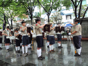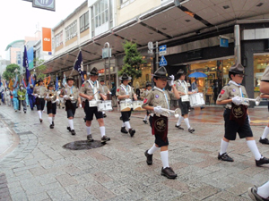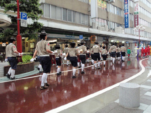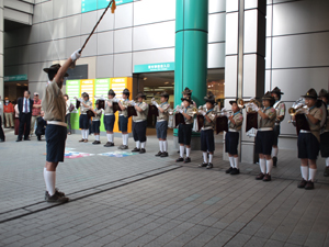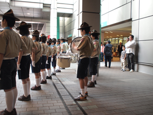 | 地元の中央商店街の 歩行者天国での演奏。 ボーイスカウトの良いPRが できたと思います。 |