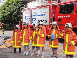 | 消防署のコーナー。 みんなは、火遊びはしません と言う約束をして 素敵なお土産をいただきました。 |