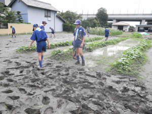 | 梅雨の雨で、畑が水浸し。 泥んこです。 |