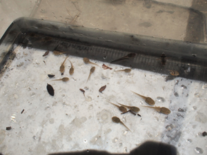 | おたまじゃくし。 足つきおたまじゃくし。 空を飛んでったゲンゴロウ。 (はじめてみました) |