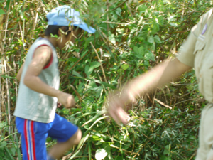| ビーバー隊は、秘密基地作り 先ずは地ならし、 草むらを開拓します。 |