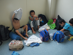 | そのあとは、着替え。 人のものと、 自分のものを間違わないように しっかり管理してね。 |