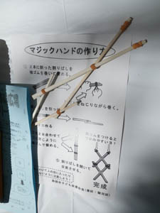 | 割り箸を使って マジックハンドを作ります。 |