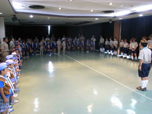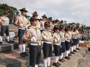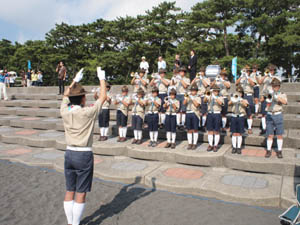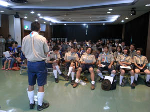 | ボーイ隊も、隊長の訓示 さすがに整列がきれいです。 |