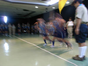 | それぞれのスカウトが 隊長の「とべ」の合図とともに 新しい隊に上進していきます。 |