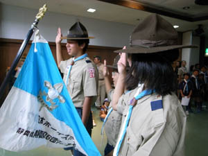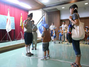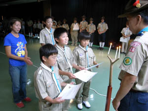 | ビーバーからカブへ。 やくそくとさだめを、しっかりと 唱えます。 |