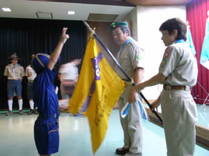 | ここだけは、特別なセレモニー スカウト世界では、これで 大人の仲間入りです。 |