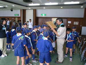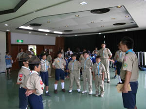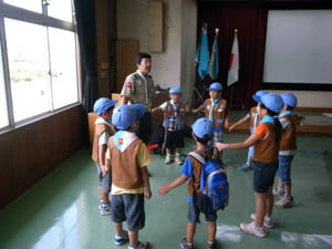 | カブ隊は、隊長からの説明を聞きます。 組のスタートでもあります。 |