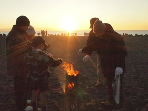 | まだ暗くて、寒いときから集合して 太陽があがり、だんだん温かく、 明るくなってきます。 太陽のありがたさを、感じます。 |