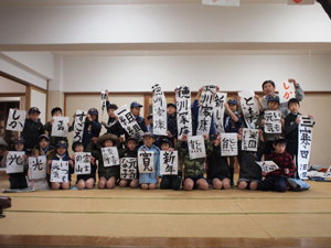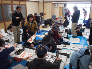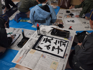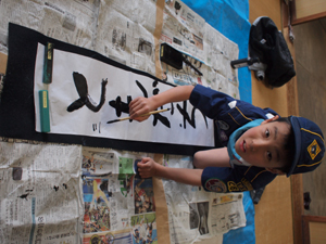 | カブは、書初め。 丁寧に、筆を動かします。 やはり、一生懸命に書きます。 |