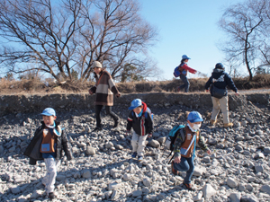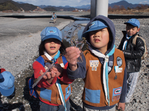 | ビーバー隊の集会です。 「安倍川に水がないよ!!!」 スカウトが発見しました。 |