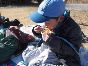 | おやつは、ビーバー隊名物 コップラーメン。 カップではありません。 紙コップです。(笑) |