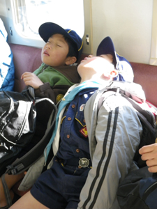 | 立派です。 この背筋。 くまスカウトたちです。 |