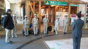 | ボーイ隊は、地震防災センターにて 地震の事、地域防災の事について、 研修しました。 緊張した様子ですね。 |