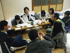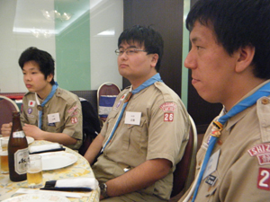 | 夜は、班会議 同世代のスカウトが 県内各地から集まっているので、 結構楽しいです。 |