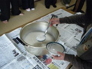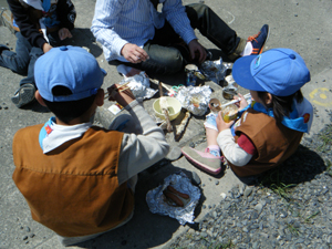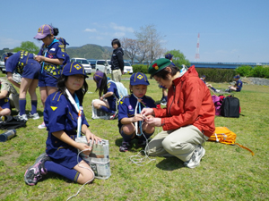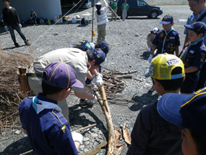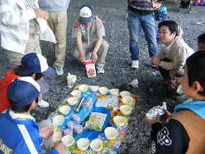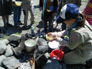 | 指導はボーイ隊のスカウトから。 「緊急時なら美味い」 とのことでした。 |
