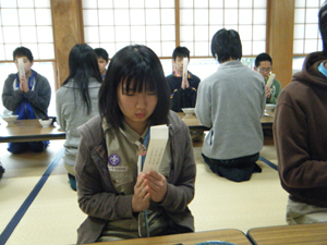 | 朝5時から、座禅 本当の修行に比べれば ほんの短い期間ですが、 大変勉強になり、 貴重な体験になります。 |
