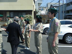 | 今年の夏に スウェーデンで開催される 第22回世界スカウトジャンボリーの 結隊式です。 |