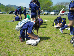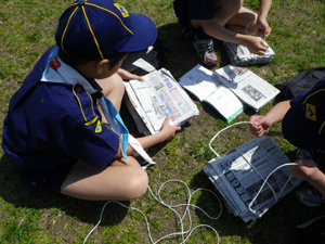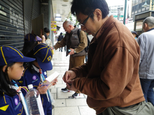 | 新聞紙の束ね方です。 隊長やリーダーから教わり、 自分でもやってみます。 |