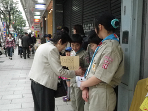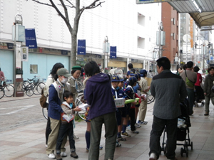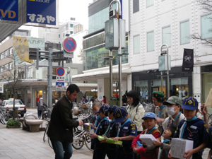 | 今日は、先月に引続き 2回目の東北関東大震災 義援金の街頭募金を 行いました。 |
