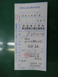 | 今日、頂いた義援金も、 日本赤十字社を通じて 被災者の皆様にお届けいたします。 本当にありがとうございました。 |
