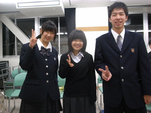 | 新年度一回目の楽器練習。 この春に高校に進学したスカウトが たまたまそろって高校の制服で、 来てくれたので記念撮影です。 学校の帰り道に寄ってくれた スカウトもいます。 みんな、進学おめでとう!!! |