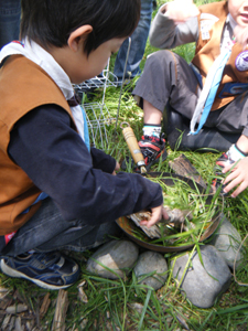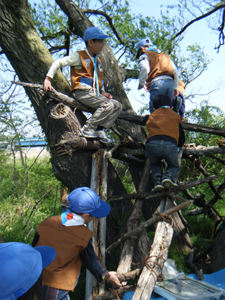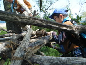 | ビーバー隊は、秘密基地作り。 材料を集めてきて作成します。 だんだん出来てきて、楽しいね。 |