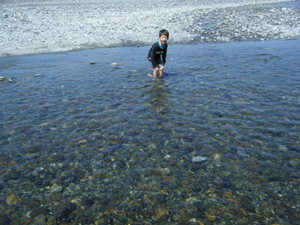 | そう思ったら!!! ちゃんと、着替えを持ってきたそうです。 安倍川のきれいな流れも ご覧下さい。 |