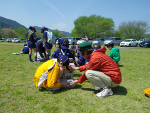| 緊急時炊事研修会を 実施しました。 スカウトだけでなく、保護者の皆様 体験のお友だち、一般の方を招いての 集会です。 |