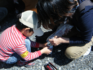 | ビーバーは初体験。 どれくらい水を入れるか 経験が物を言います。 |