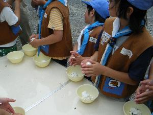 メインプログラムの 団子作りです。 先月の集会で出来なかった分です。 |