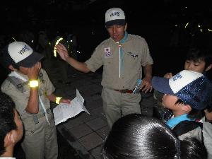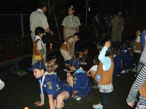 カブ隊の、点灯式を 見学します。 「きれいだね」スカウトの感想です。 |
