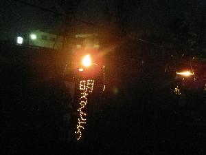 | カブ隊、点灯式。 先週の集会で作った メッセージランタンに 明かりを点します。 東北の方向に向かって 黙祷をささげました。 |